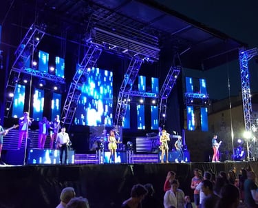 Cuenta con pantallas Led, móviles última generación, efectos especiales y equipo de sonido 60.000W, Line Array System, controlado por un buen equipo técnico, 2 tráiler y autobús de transporte.